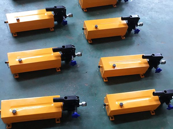 SYB系列手動(dòng)泵是由軸向柱塞泵、組臺(tái)閥、油箱等組成的一種小型液壓泵站。該系列手動(dòng)泵具有壓力高、體積小、操作方便等特點(diǎn),特別適用于野外電源條件下作業(yè)。該泵可作為耐壓試驗(yàn)泵用,當(dāng)配備油缸或?qū)S脵C(jī)具后可以進(jìn)行起重、彎曲、調(diào)直壓型、剪切、裝卸等作業(yè)。