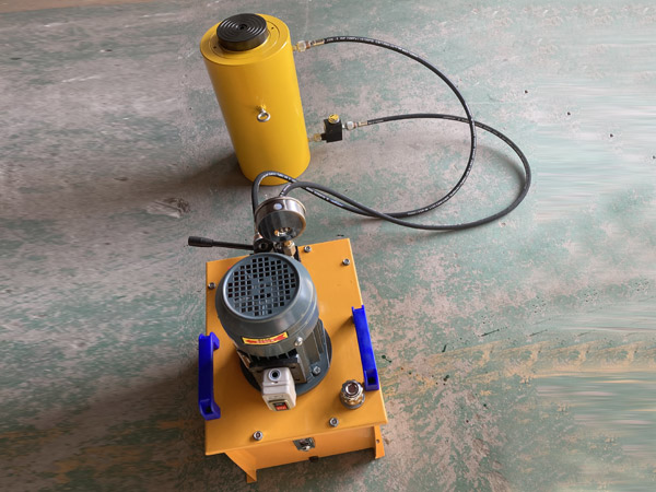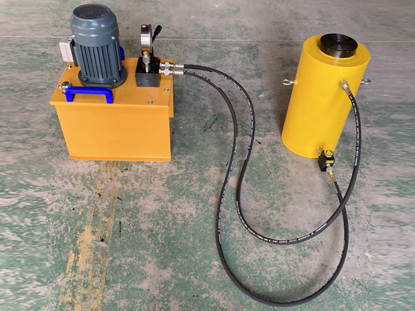 5、使用時先將手動泵的快速接頭與頂對接,然后選好位置,將油泵上的放油螺釘旋緊,即可工作。將放油螺釘旋松,油缸卸荷。