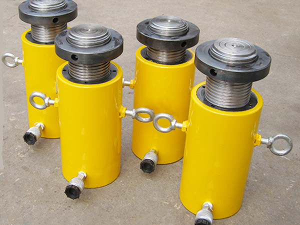 d)新的或久置的油壓千斤頂,因油缸內(nèi)存有較多空氣,開始使用時,活塞桿可能出現(xiàn)微小的突跳現(xiàn)象,可將油壓千斤頂空載往復(fù)運(yùn)動2-3次,以排除腔內(nèi)的空氣。長期閑置的千斤頂,由于密封件長期不工作而造成密封件的硬化,從而影響油壓千斤頂?shù)氖褂脡勖杂蛪呵Ы镯斣诓挥脮r,每月要將油壓千斤頂空載往復(fù)運(yùn)動2-3
