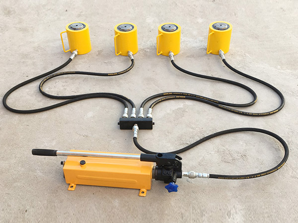 7、如需幾只千斤頂同時起重時,除應正確安放千斤頂外,應使用多頂分流閥,且每臺千斤頂?shù)呢摵蓱,注意保持起升速度同步。還要考慮因重量不勻地面可能下陷的情況,防止被舉重物產(chǎn)生傾斜而發(fā)生危險。